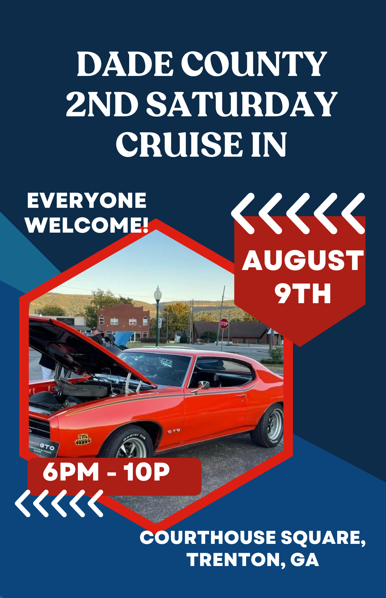 Join us Saturday, June 14th from 6 PM to 10 PM at Courthouse Square in Trenton, GA for a night of classic cars, cool rides, and good times! Whether you’re showing off your wheels or just enjoying the view, everyone is welcome to cruise into the fun.