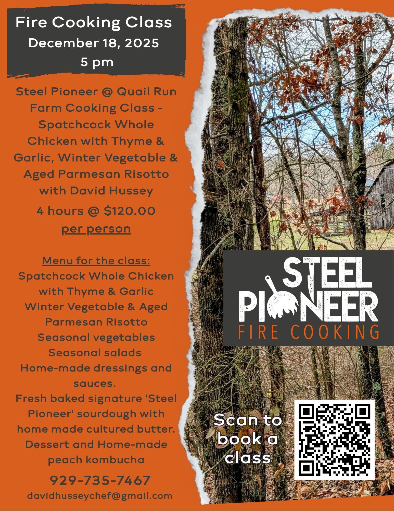 Join Steel Pioneer Fire Cooking at Quail Run Farm for an unforgettable hands-on experience with award-winning UK Chef David Hussey!