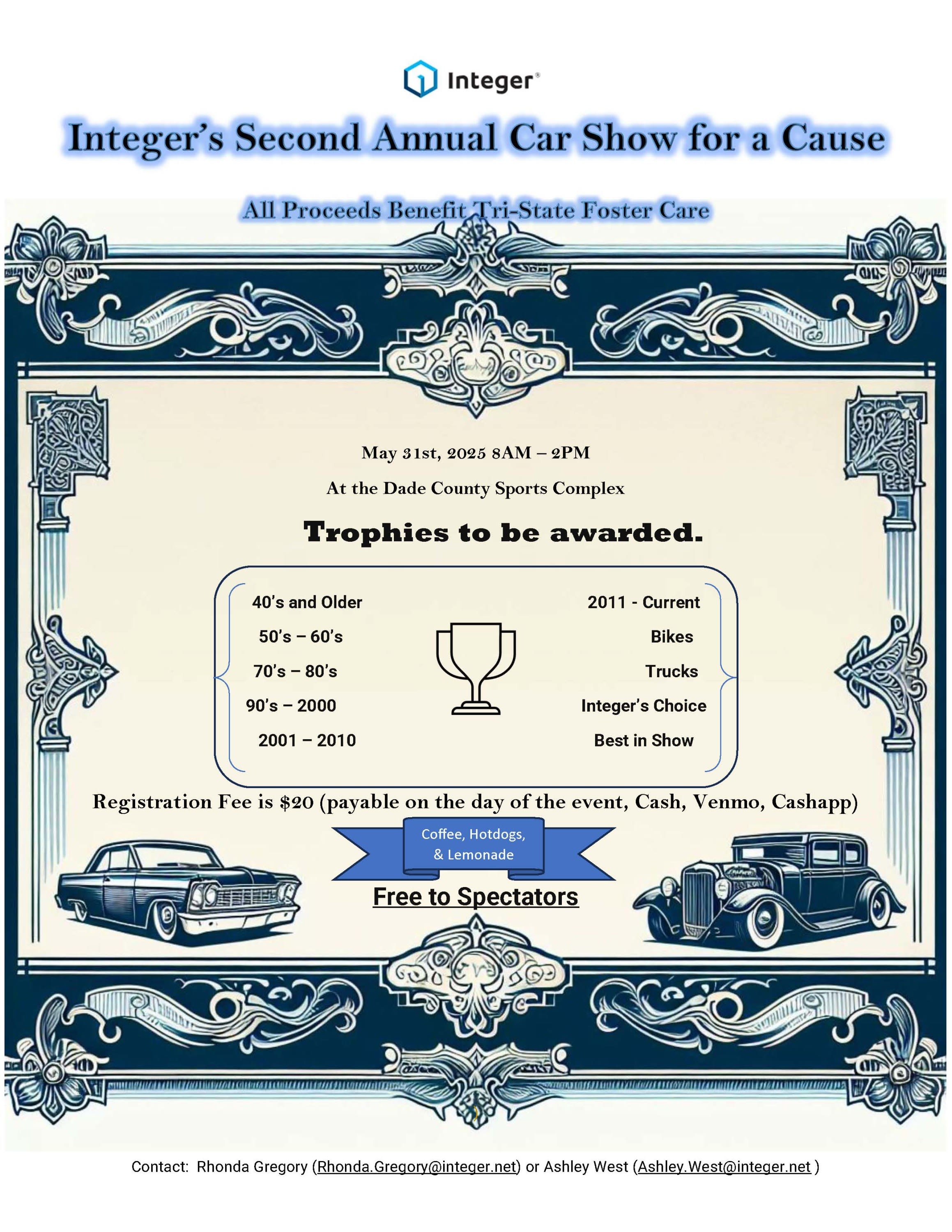 Join us for Integer’s 2nd Annual Car Show for a Cause — a day full of chrome, classics, and community! All proceeds will benefit Tri-State Foster Care, so come show your support while enjoying an awesome lineup of vehicles! πβ¨