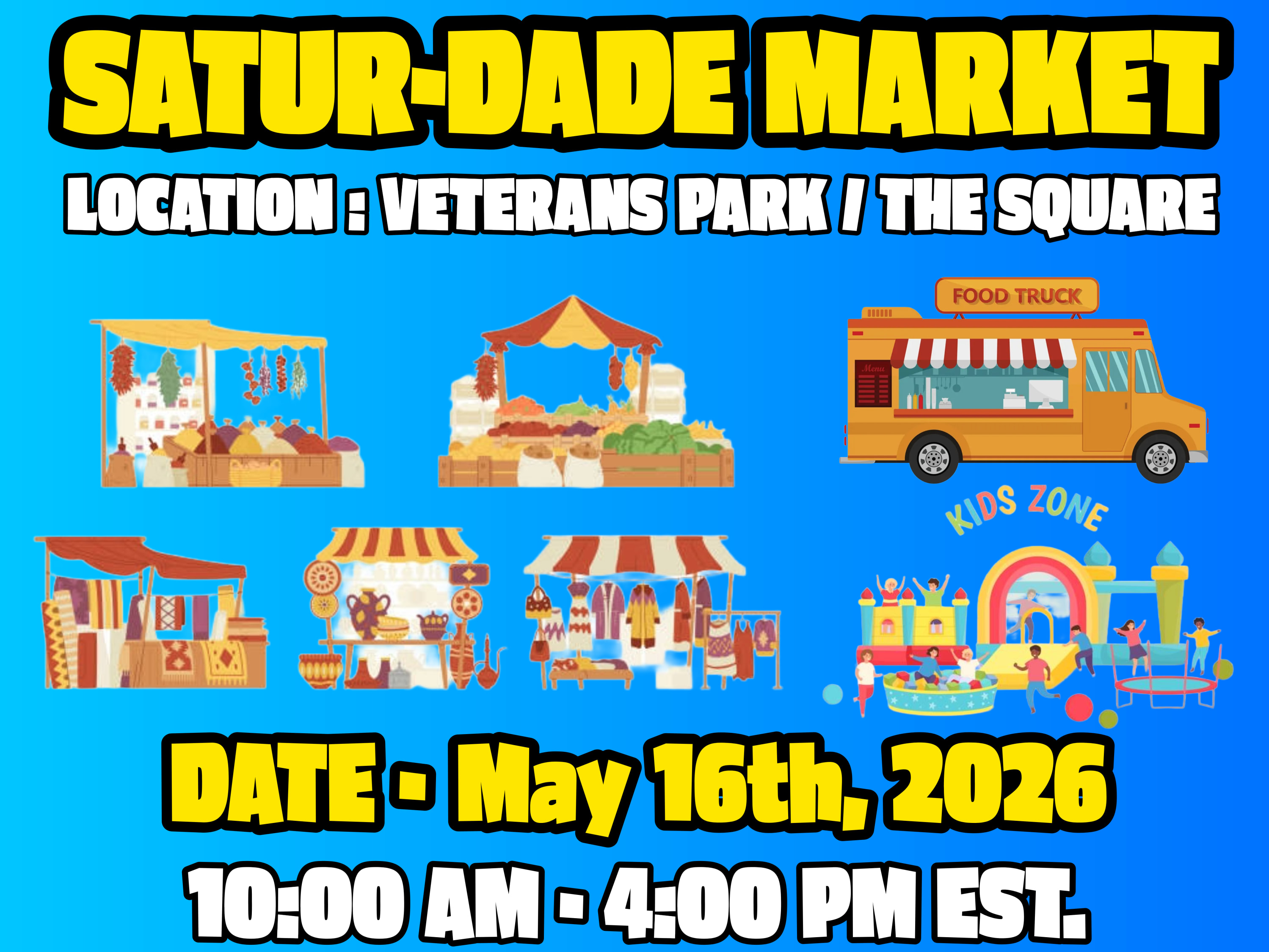 🌞 Mark your calendar for a day of fun, shopping, and community at the Satur-Dade Market!